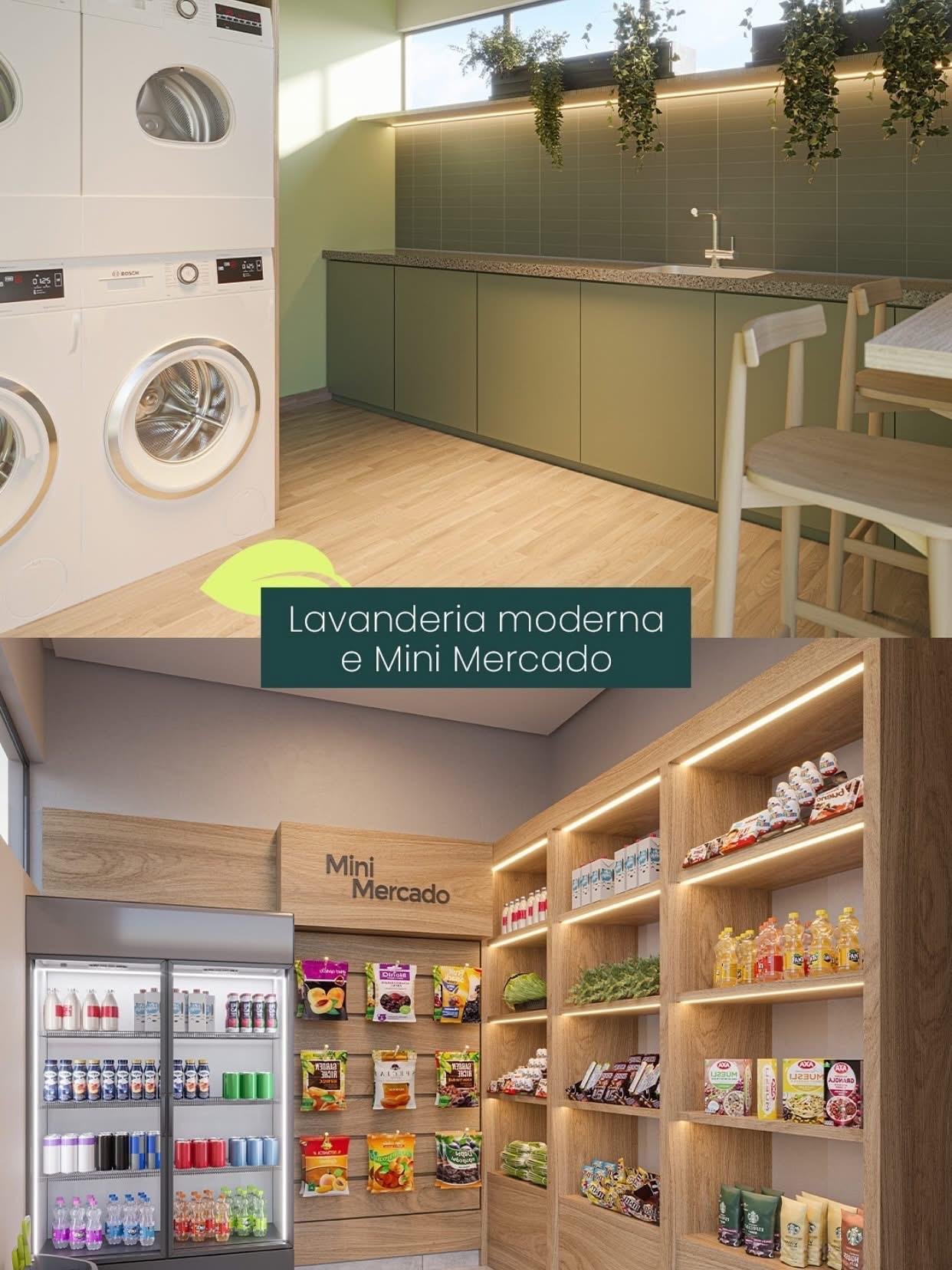 – Wi-Fi nas áreas comuns ; Automação de iluminação ; Lavanderia compartilhada ; Escritório coletivo ; Minimercado